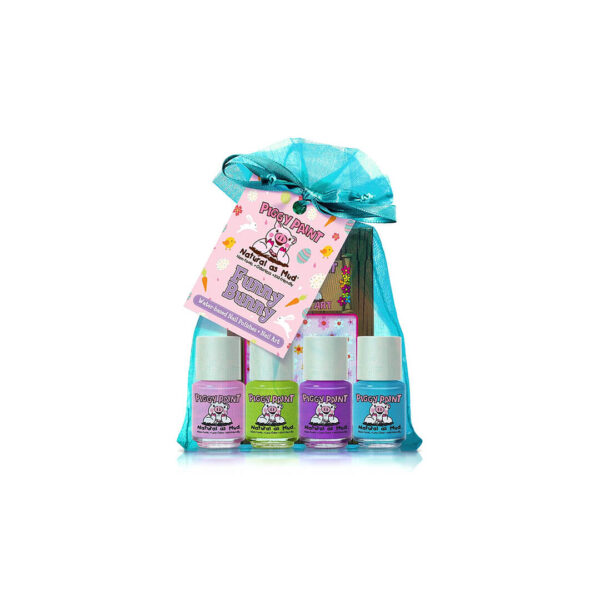 Piggy Paint | 100% Non-Toxic Girls Nail Polish | Safe, Cruelty-free, Vegan, & Low Odor for Kids | Funny Bunny (Easter 4 Polish + Nail Art Gift Set)