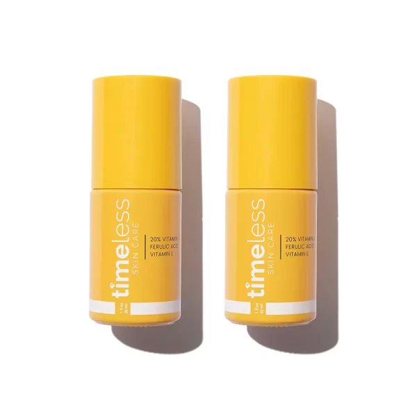 Timeless Skin Care 20% Vitamin C + E Ferulic Acid Serum – 1 oz, Pack of 2 – Lightweight, Non-Greasy Formula – Use Daily to Brighten, Restore & Correct Skin – Recommended for All Skin Types
