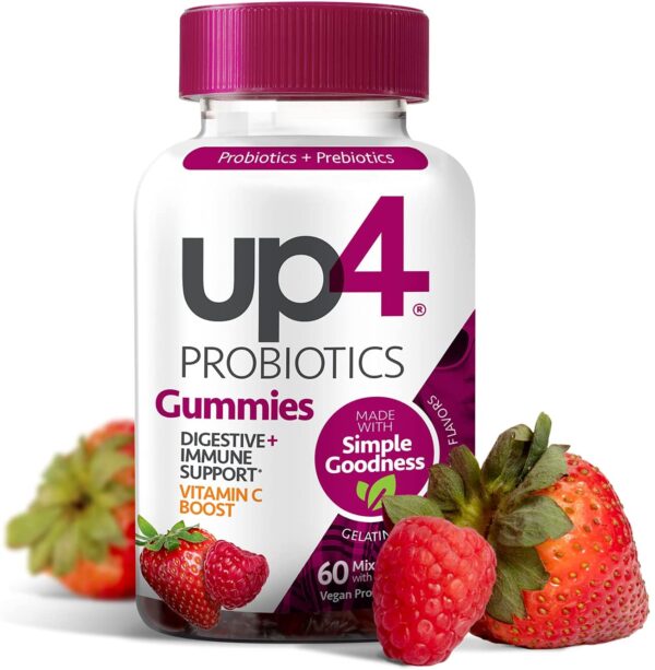 up4 Probiotic Gummies for Men and Women, Digestive and Immune Support with Prebiotics and Vitamin C, Gluten Free, Gelatin Free, Vegan, Non-GMO, 60 Count