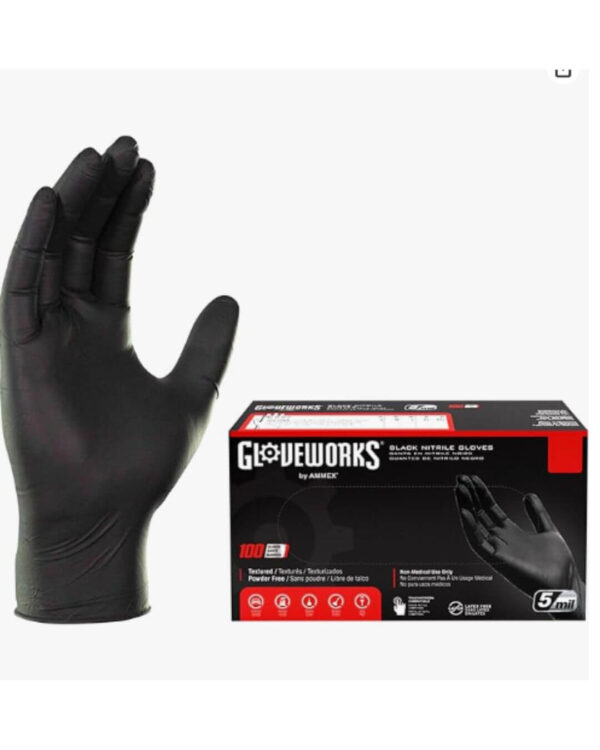 GLOVEWORKS Black Nitrile Gloves, Disposable, Latex Free, 5 Mil