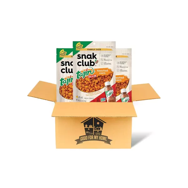 - Chili Lime Toasted Corn Bundle. Three-11 Oz Snack Klub Tajin Toasted Corn in a Good For My Home Box! Low Cholesterol Toasted Corn with Tajin Seasoning in a Resealable Family Snack Bag!
