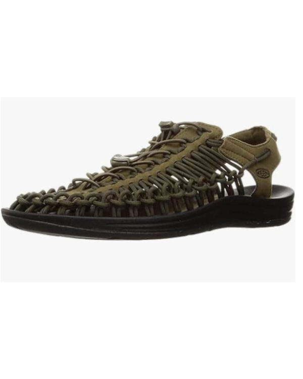KEEN Men’s Uneek Classic Two Cord Sandals Dark Olive/Black size 10.5