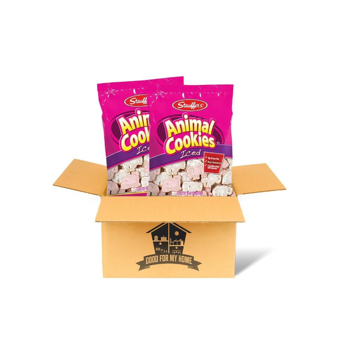 Animal Iced Cookies Bundle. Includes Two 14.5 Oz each pack of Sttauffers Animal Cookies Iced Snack Packs. Sugar Frosted Animal Cookies for Kids Snacks. Animal Shaped Snack, with Good For My Home Box!