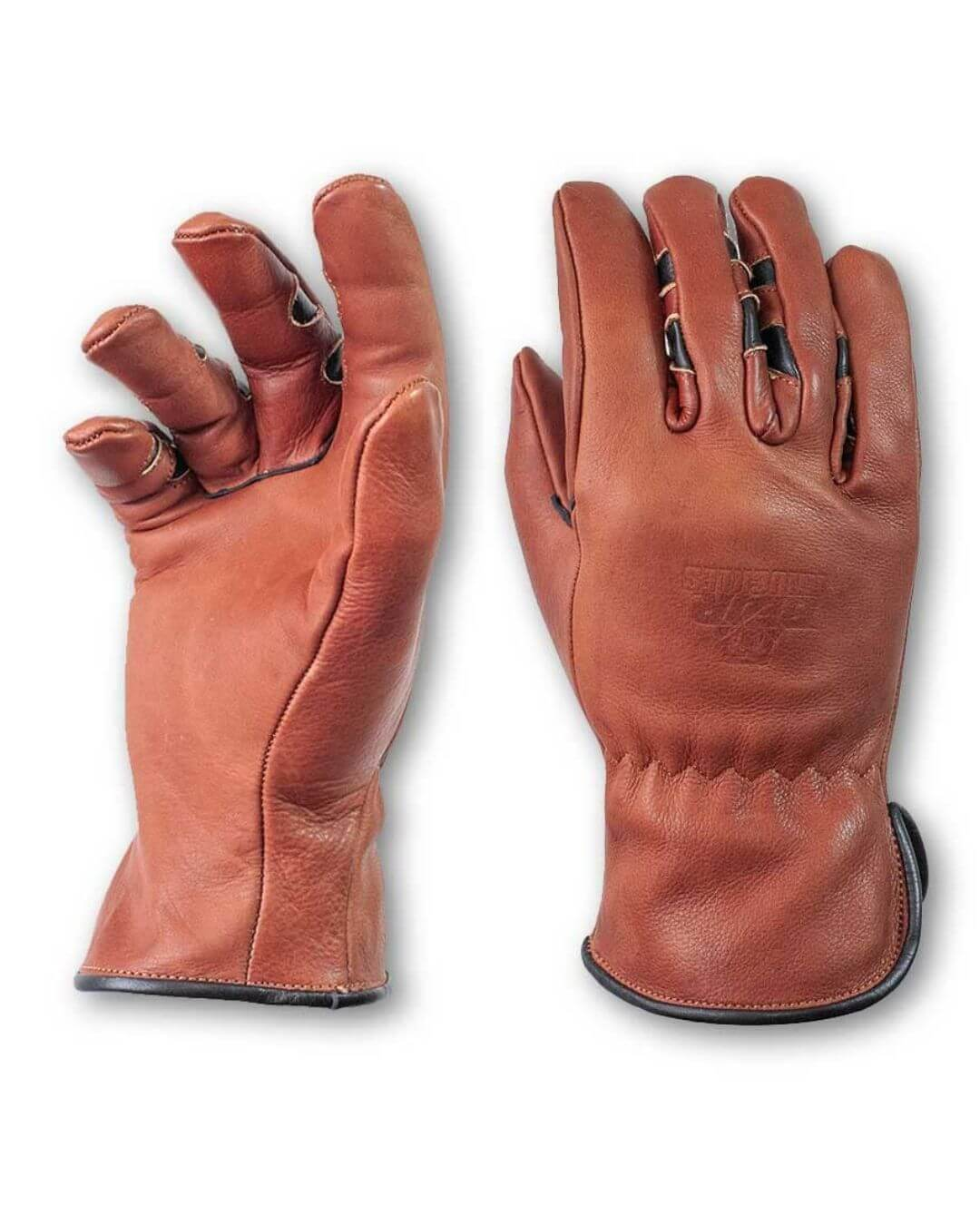 Bear Knuckles Regular Duty Brown Cowhide Leather Work Gloves | Patented Pre-Curved Finger Design (Large)