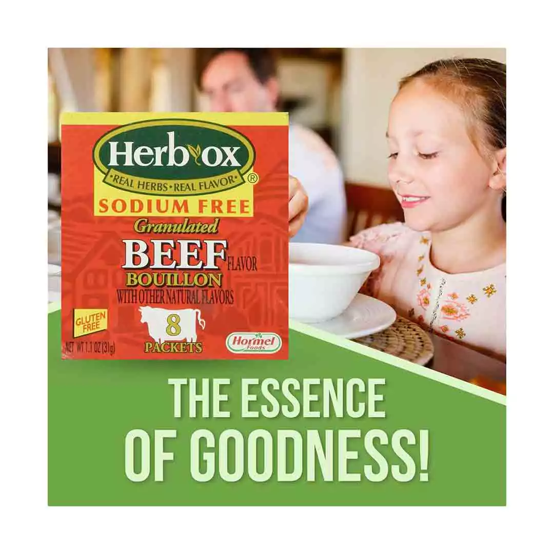 - Beef Bouillon Seasoning Bundle. Includes Four 1.1 Oz Box 8ct Packets of Granulated Beef Bouillon. Gluten Free and Sodium Free Bouillon Beef Seasoning. Comes with a Good For My Home Box!