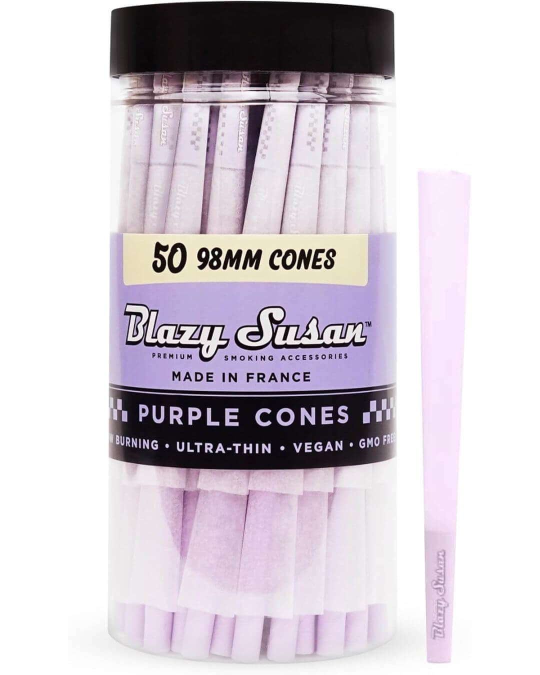 Blazy Susan Purple Pre-Rolled Cones, 50 Count (98mm) – Slow-Burning Rolling Paper & Ultra-Thin Natural Preroll Cones with Filter Tips – Vegan, GMO-Free, Convenient & Easy-To-Use Prerolled Cones
