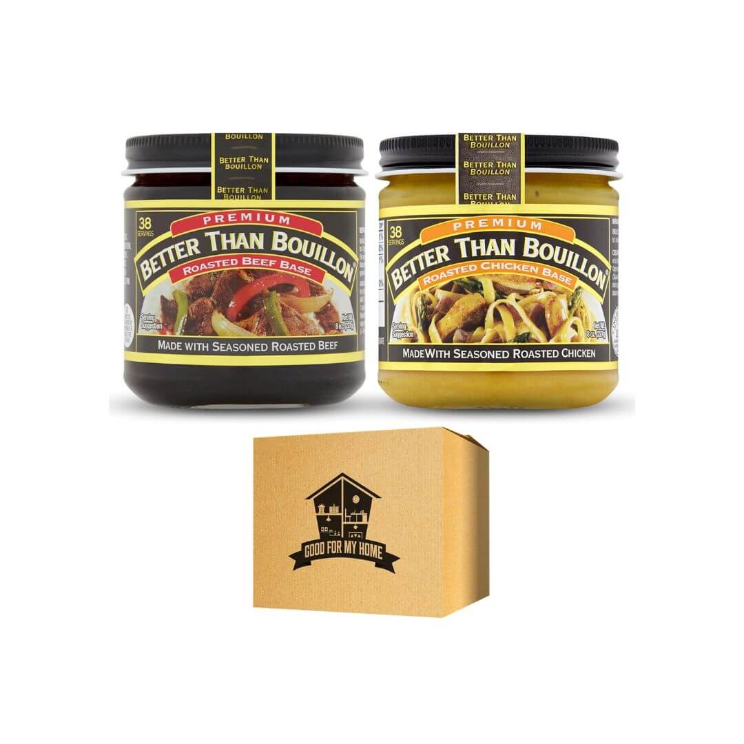 Bouillon Paste Variety Pack. Two-8 Oz Jars of Bouillon in a Good For My Home Box! One Each: Bouillon Chicken & Beef Bouillon. 38 Servings of Beef & Chicken Bouillon Paste!
