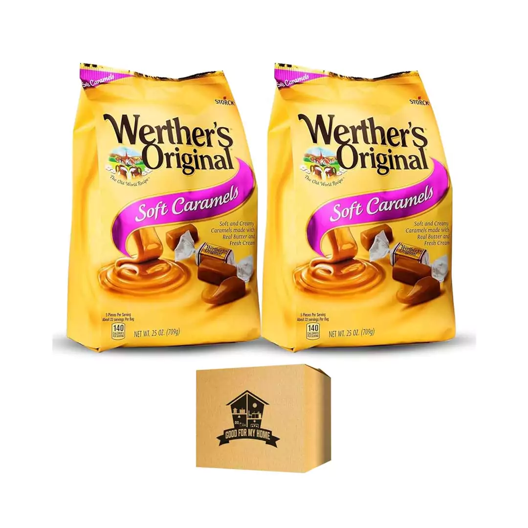 Caramel Filled Bulk Hard Candy Two-27 Oz Werthers Caramel Filled Candy Bags in a Good For My Home Box. Werthers Original Hard Candy with Creamy Caramel! Individually Wrapped Caramels for Sharing!