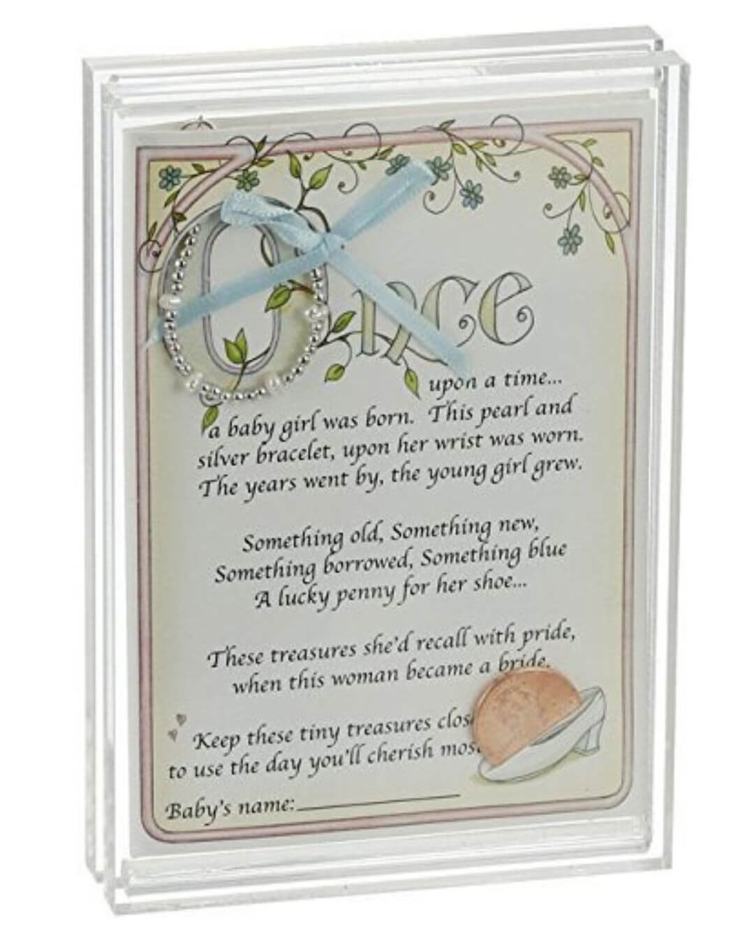 Child to Cherish Baby to Bride Bracelet, Infant Girls Silver and Pearl Jewelry, Personalized Frame, Newborn Religious Gift for Shower, Christening, Baptism