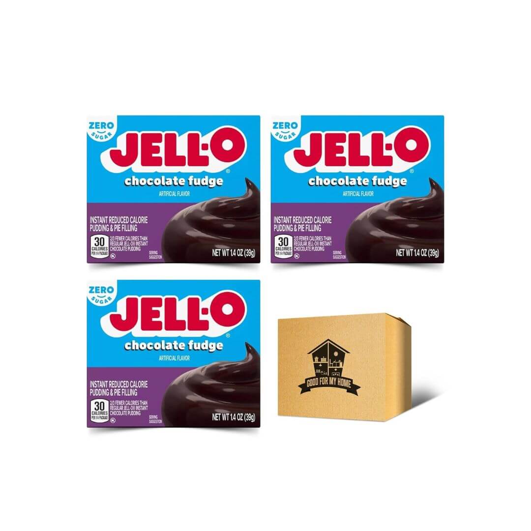Chocolate Fudge Pudding Mix. Includes Three 1.4 Oz of Gelo Instant Chocolate Fudge Pudding Mix, Pie Filling, and More! Fat Free and Zero Sugar Chocolate Fudge Mix. With a Good For My Home Box!