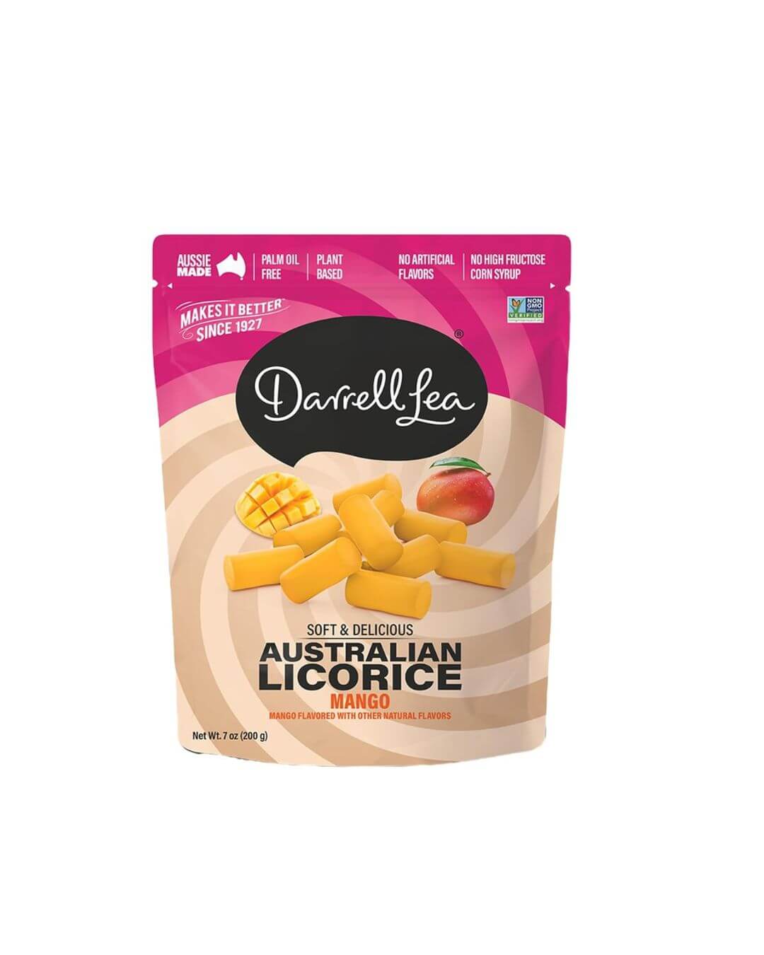 Darrell Lea Soft Australian Licorice, Non-GMO, No Palm Oil, Plant Based, No High Fructose Corn Syrup, Soft & Chewy Licorice Candy, Made in Australia (Mango, 7 Ounce (Pack of 1))