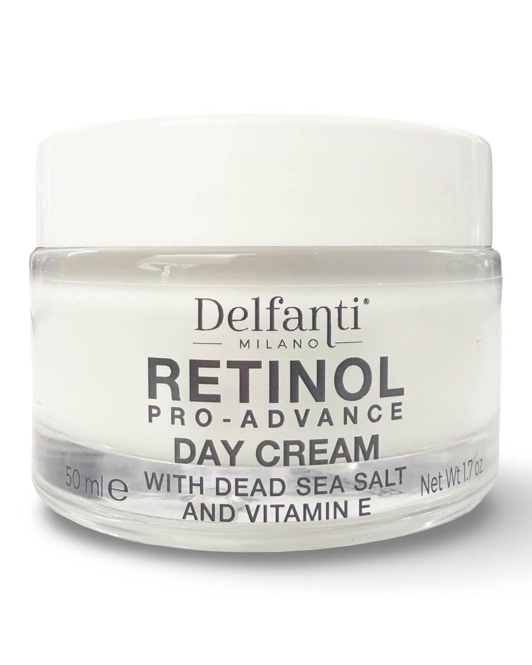 Delfanti Milano, Retinol Pro Advance Day Cream with Dead Sea Salts and Vitamin B, Anti Aging Moisturizer for Face and Neck, Made in Italy, 1.7 oz 50 mL