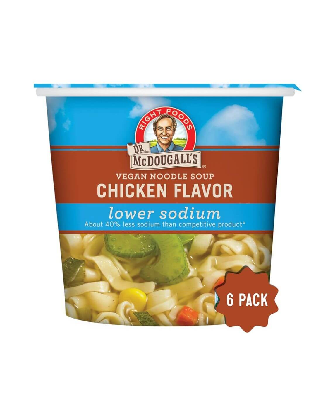 Dr. McDougall’s Vegan Chicken Soup – Chicken Noodle Soup – Organic Ramen Noodle Cups – Lower Sodium Vegan Soup with Instant Noodles – 1.4 Ounces – Pack of 6