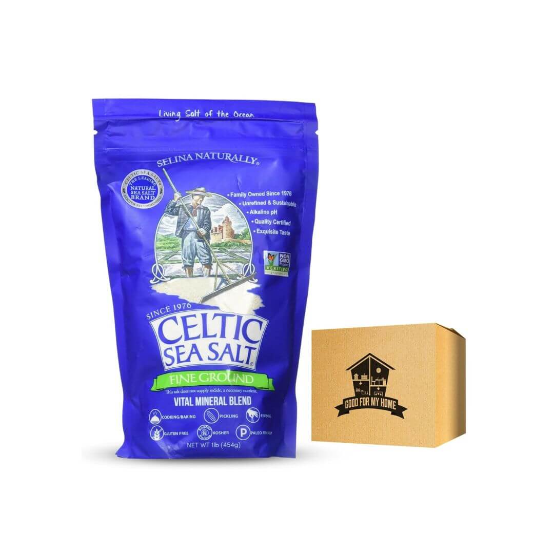 Fine Ground Celtic Sea Salt Bundle. Includes One-16 Oz Bag of Selina Naturally Celtic Sea Salt in a Good For My Home Box. One Lb of Unrefined and Kosher Salt! Fine Celtic Salt in Resealable Bags!
