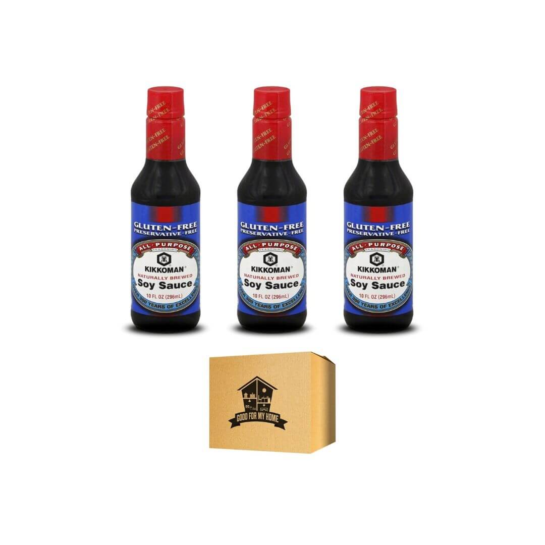 Gluten Free Soy Sauce Bundle. Includes Three 10 Fl Oz each Kikkomann Soy Sauce. Japanese Soy Sauce, and Gluten Free Soy Sauce for Cooking, Sushi Sauce, and More! With a Good For My Home Box!