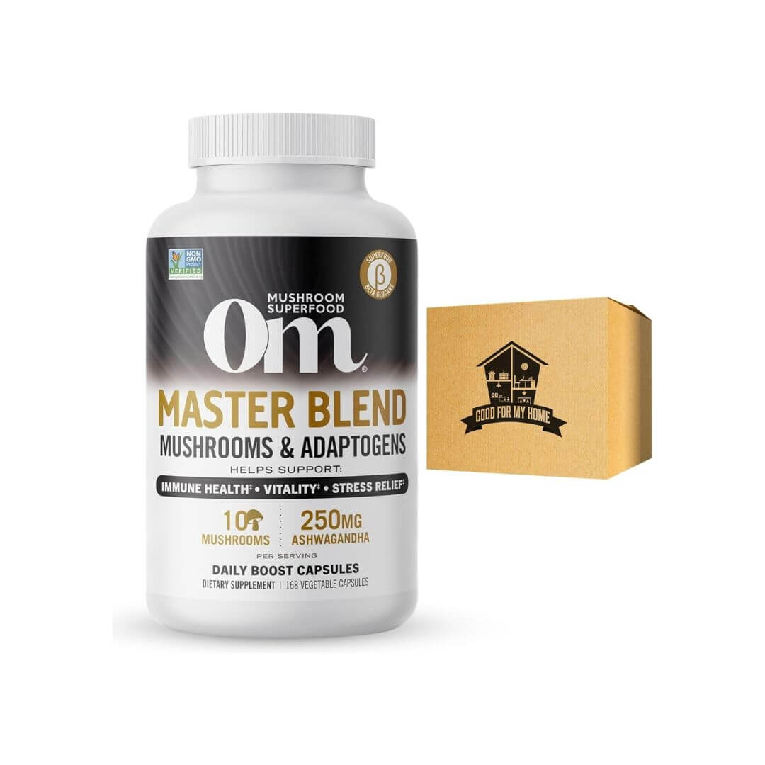 GOOD FOR MY HOME Mushroom Supplement Bundle. Includes One-160 Ct Omm Mushroom Master Blend in a Box. Omm Mushroom Superfood Mushroom and Adaptogens Supplements for Stress Relief and Vitality!