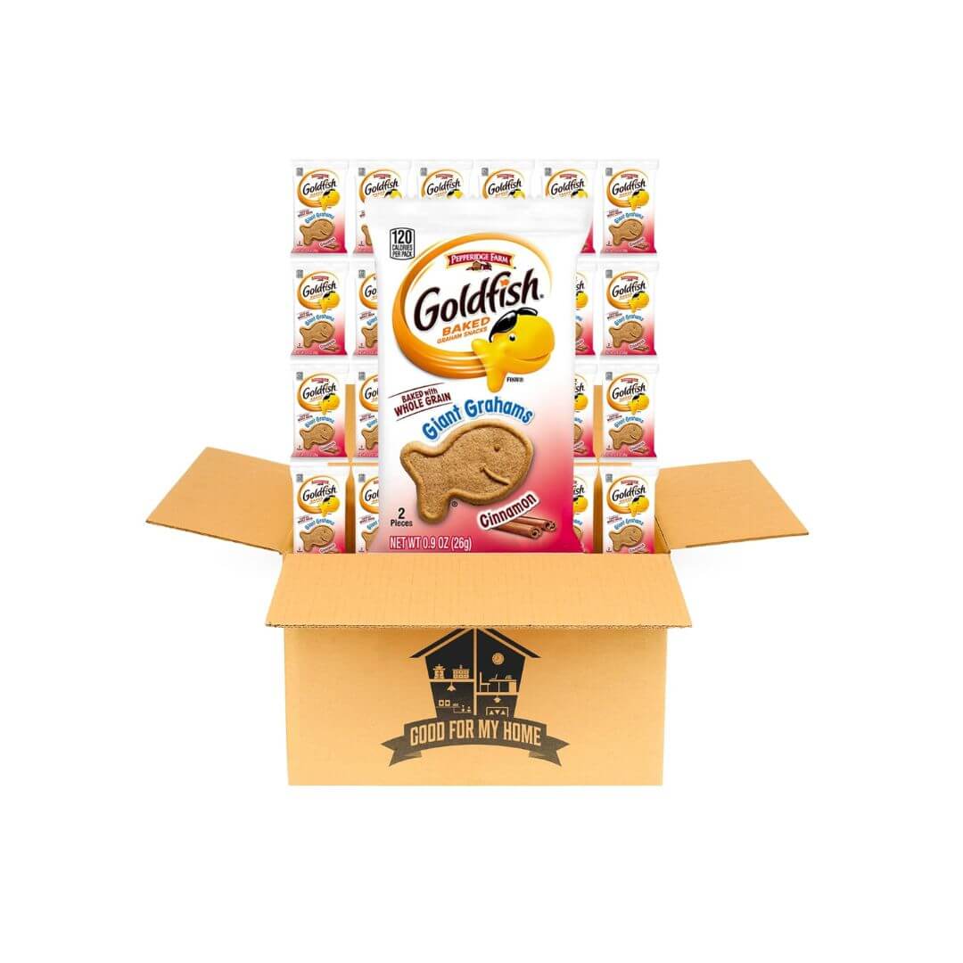 Graham Crackers Bundle. Includes One Pack of 30 Gold-Fish Giant Cinnamon Graham Crackers. Baked Snacks and Whole Grain Crackers. With Good For My Home Box. Healthy Graham Crackers Snack Packs!