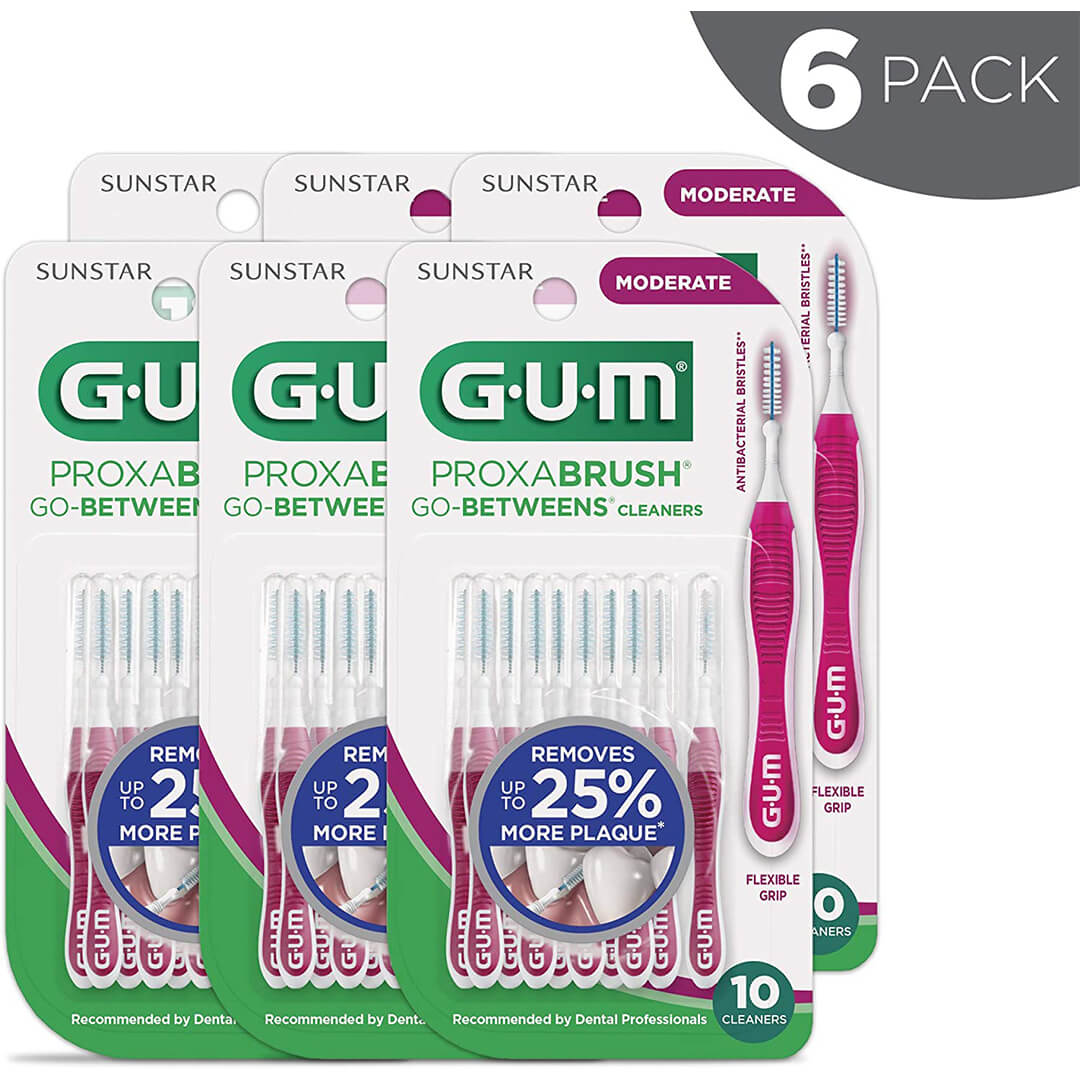 GUM – 10070942002469 Proxabrush Go-Betweens Interdental Brushes, Moderate, Plaque Removal, 10 Count, (Pack of 6)