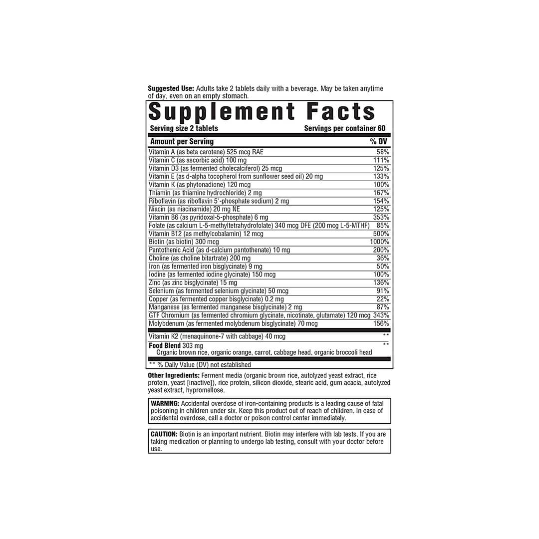 - Two Tablets: Take daily, anytime throughout the day, even on an empty stomach; Includes methylated folate and B12, plus active vitamin B6