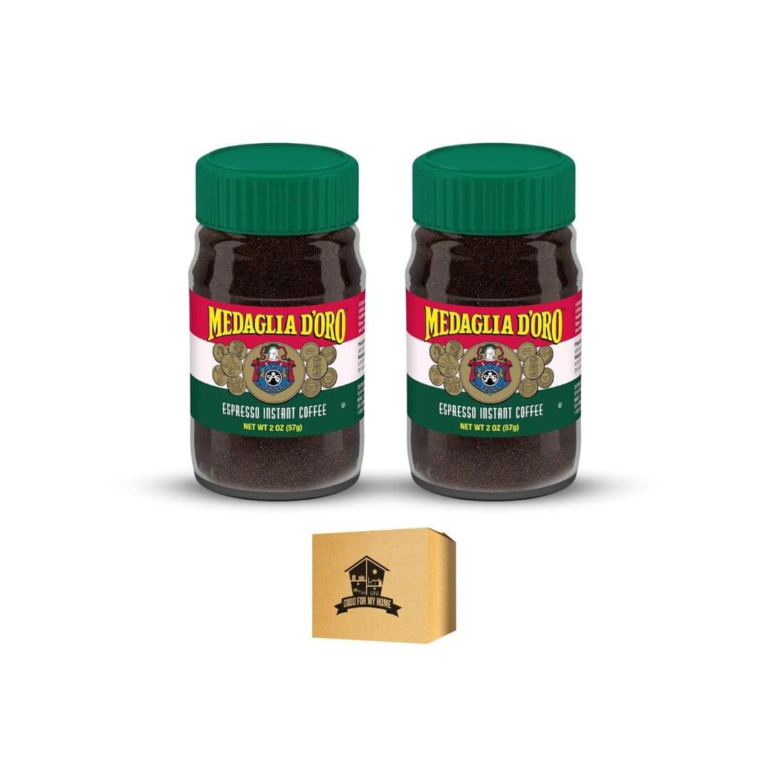Instant Espresso Coffee Bundle. Includes Three 2 Oz of Medaglia D’Oro Instant Espresso Coffee Powder. Instant Coffee, Double Roast Italian Espresso Coffee. Comes with a Good For My Home Box!