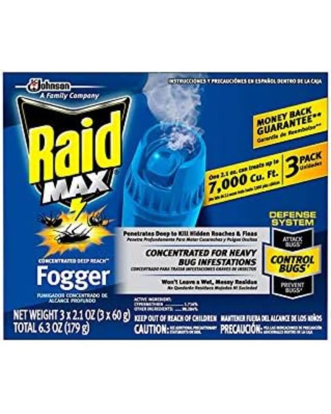 Johnson Raid Max Fogger, Insect Killer for Mosquito, Ant, Roach, Spider, Flea, for Indoor Use 6.3 Ounce (Pack of 1)