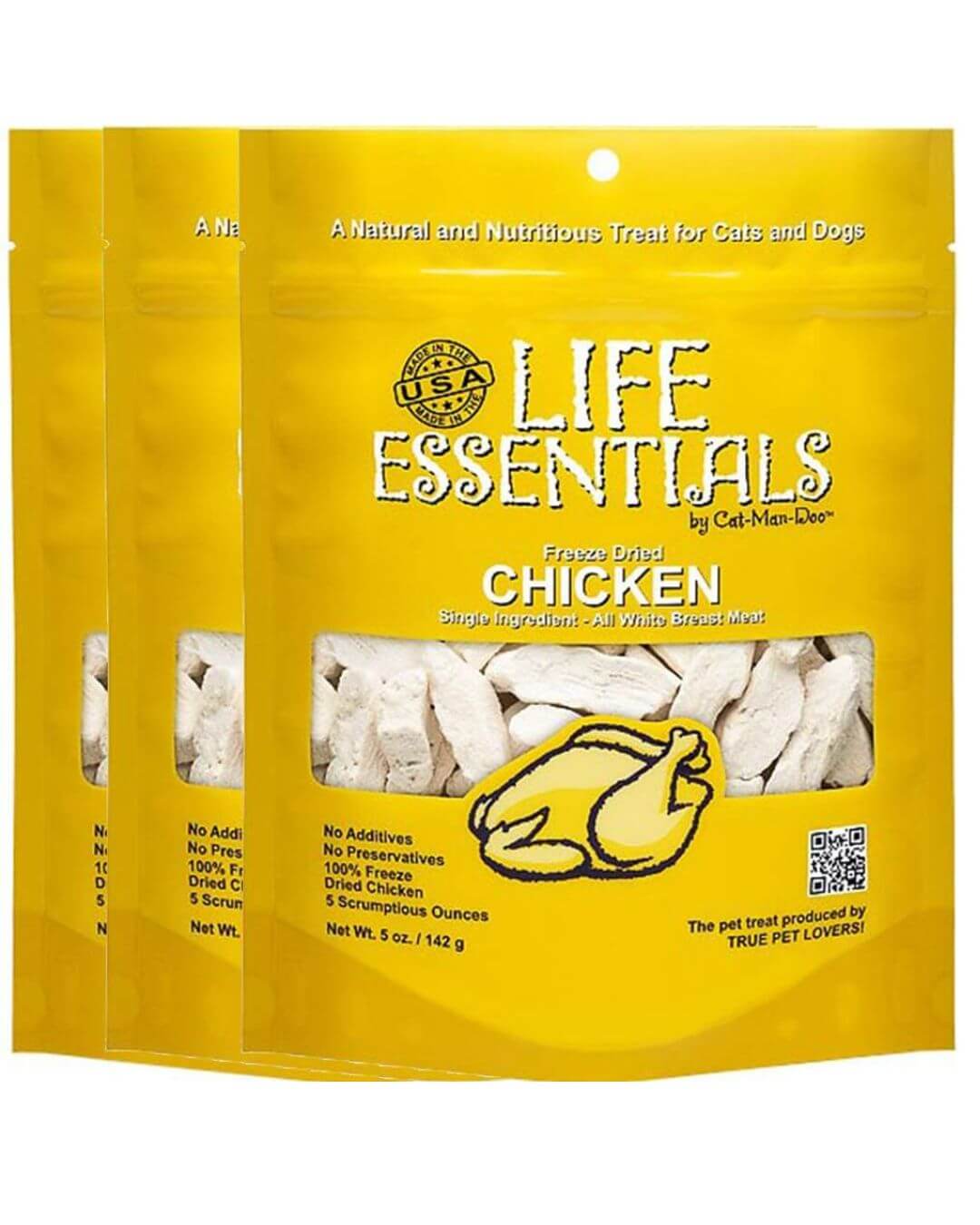 LIFE ESSENTIALS BY CAT-MAN-DOO All-Natural Freeze Dried Chicken Treats for Dogs & Cats No Grains, Fillers, Additives and Preservatives, A Healthy Treat Proudly Made in The USA – 3 Pack (5 oz. Bags)