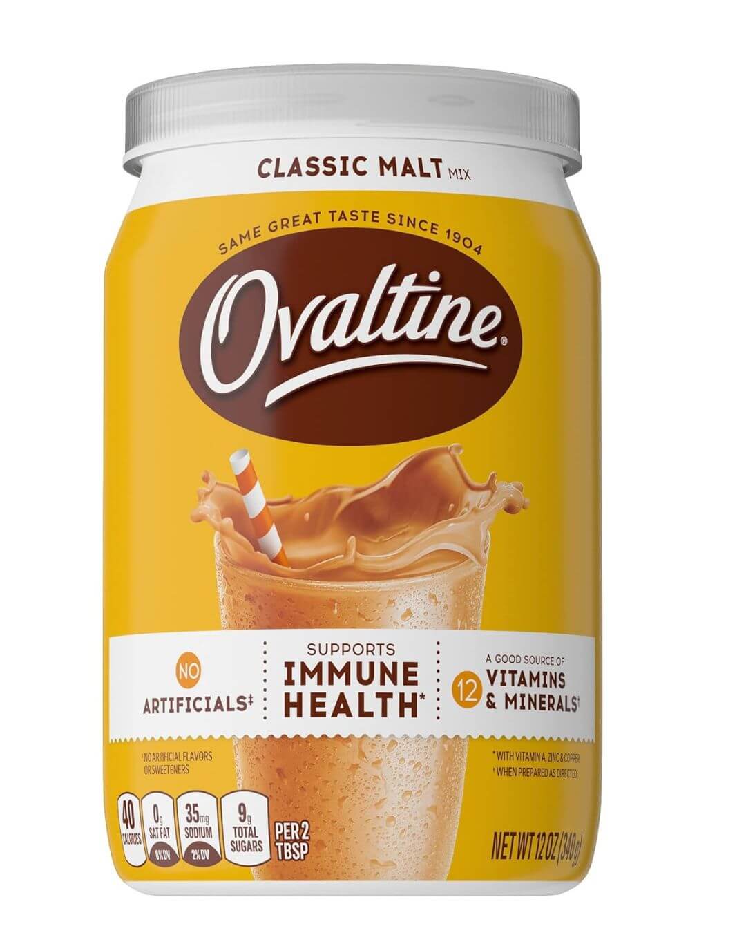 Ovaltine Classic Malt Powdered Drink Mix for Hot and Cold Milk, 12 OZ Canister