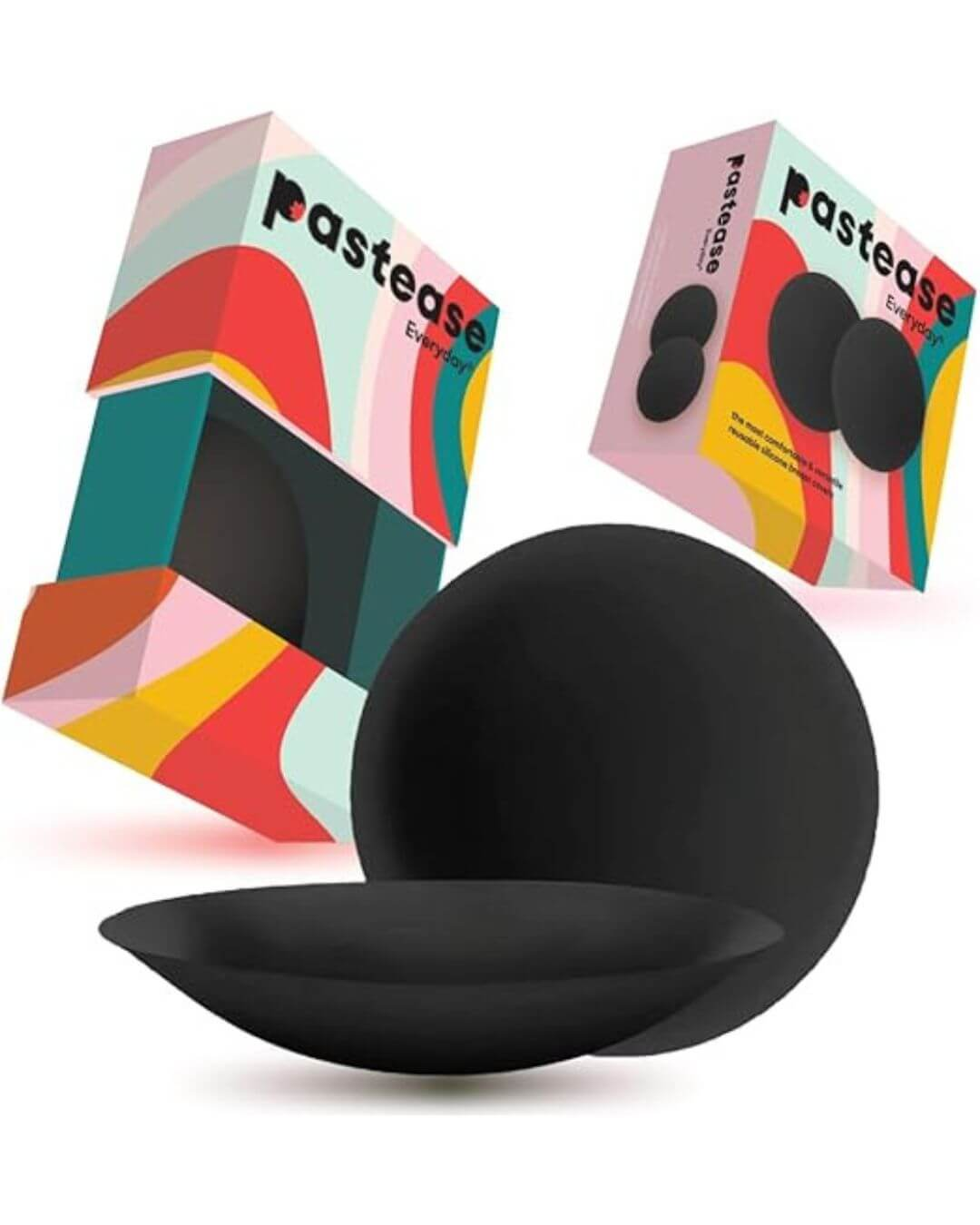 PASTEASE Nipple Covers – Black Sticky Adhesive Silicone Pasties – Reusable & Hypoallergenic Seamless Cakes Breast Covers