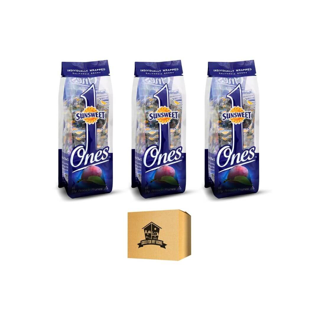 Pitted Prunes Bundle. Includes Three 6 Oz of Sun-sweet Organic Pitted Prunes. Fresh Organic Fruit, Gluten Free, and Nut Free Individually Wrapped Prunes. Comes with a Good For My Home Box!
