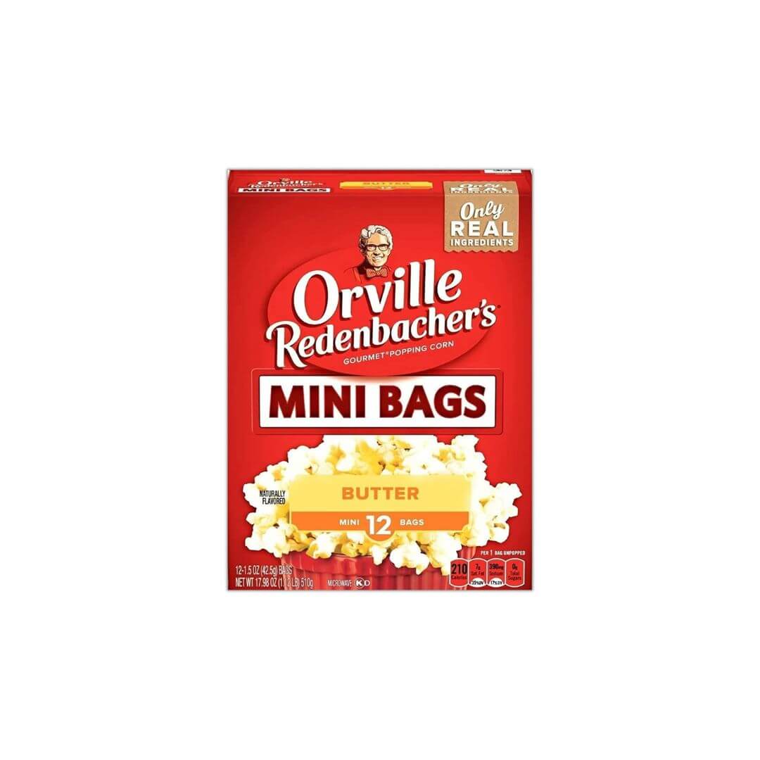 Popcorn Mini Bags Bundle. Includes 1-17.98 Oz Box of Orville Redenbachers Microwave Butter Popcorn in Mini Bags. Contains 12-1.5 Oz Microwave Popcorn Mini Bags. Comes With a BELLATAVO Fridge Magnet!