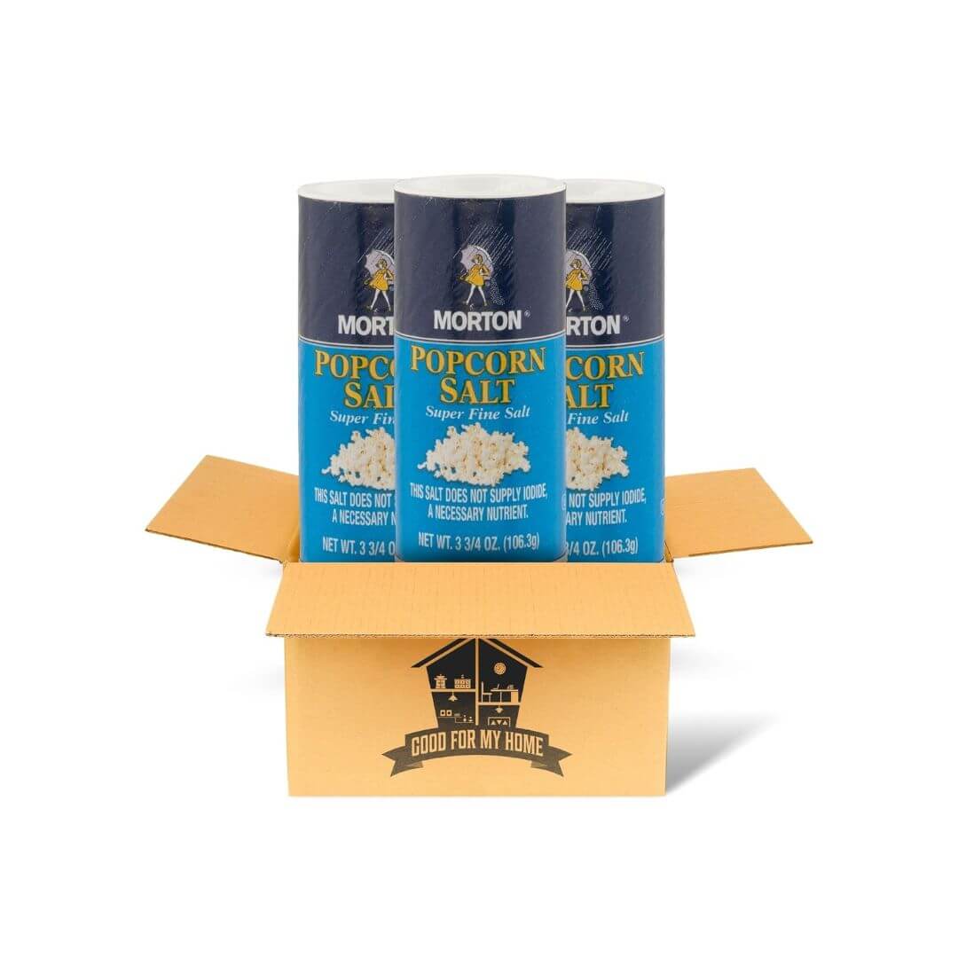 Popcorn Salt Bundle. Includes Three Mortonn Popcorn Salt. 3.75 Oz each Fine Salt Shaker for Popcorn Seasoning. Mini Salt Shaker for Cooking and Baking. Comes with a Good For My Home Box!