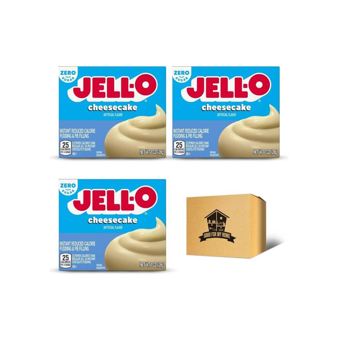 Pudding Mix Bundle. Includes Three 1 Oz each of Gelo Zero Sugar Cheesecake Instant Pudding Mix. Low Calorie and Sugar Free Pudding Mix, Pie Filling, and More! Comes with a Good For My Home Box!