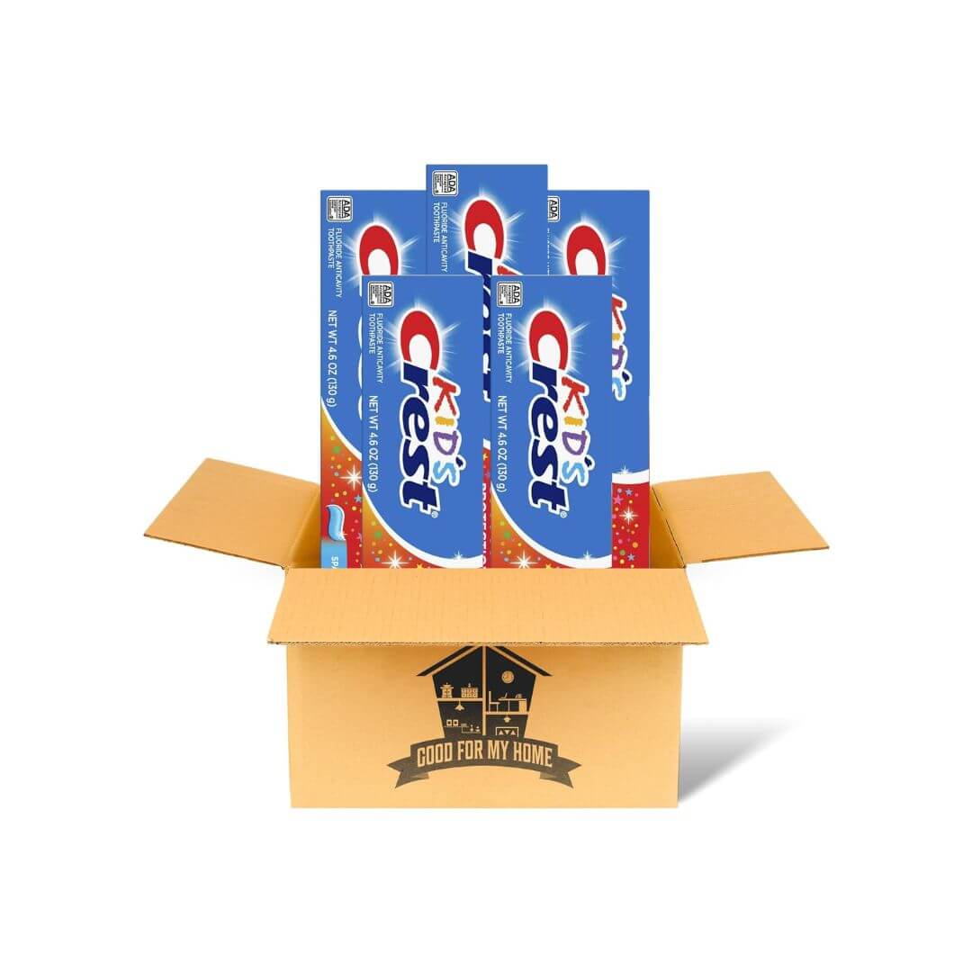 Sparkle Fun Toothpaste Bundle: Five – 4.6 Oz Crest Kids Cavity Protection Toothpaste Sparkle Fun Flavor Toothpaste Comes with Good For My Home Box – for Enamel Care & Cavity Protection for Children.