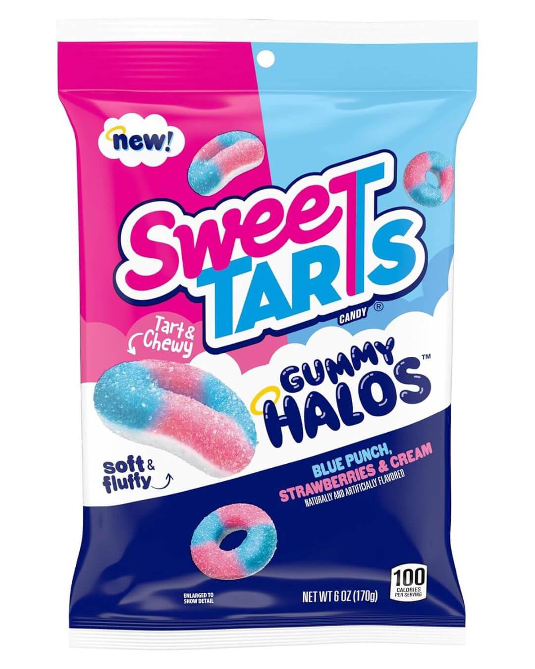 SweeTARTS Halos, Candy, Blue Punch and Strawberries and Cream, Tart and Chewy, Soft and Fluffy, 6 oz