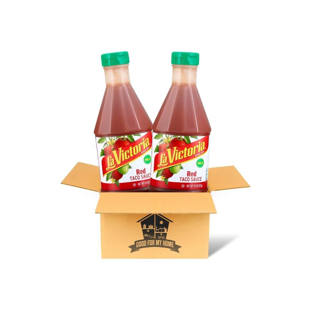 Taco Sauce Bundle. Includes Two 15 Oz each of Le Bictorya Red Mild Taco Sauce. Idea use as Gluten Free Enchilada Sauce, Pizza Sauce, Tortilla Sauce, and More! Comes with a Good For My Home Box!