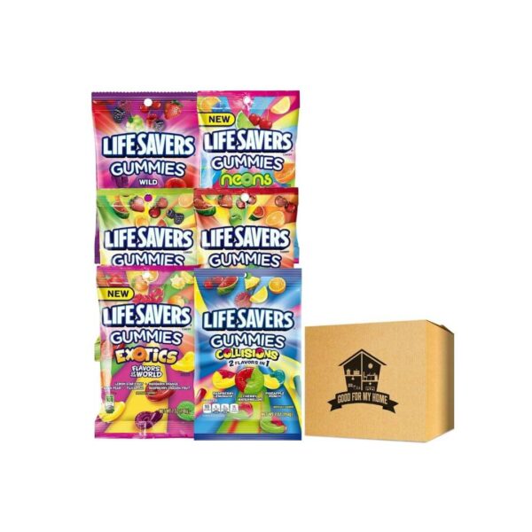 Assorted Fruit Gummies. Includes Six 7 Oz each of Layfsayvers Fruit Gummies in a GFMH Box. One pack each; Collision, Wild Berries, Exotic Fruit, Neon, Sours, and 5 Flavors Assorted Gummy Candy!