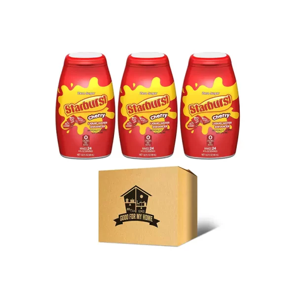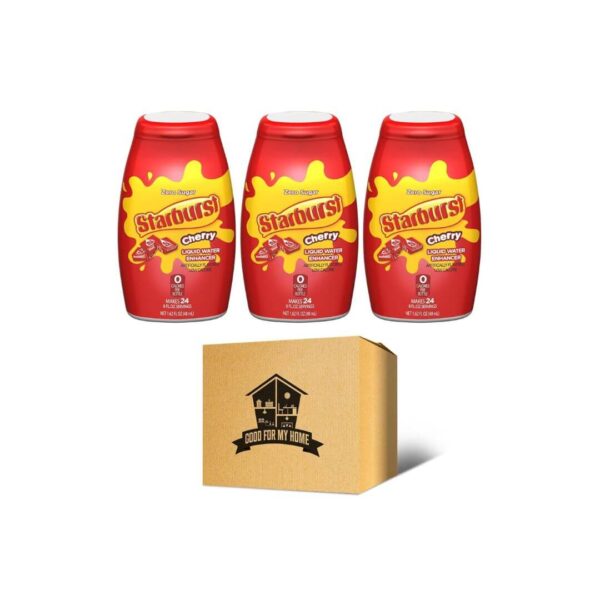 • This Cherry Flavored Liquid Water Enhancer bundle includes three bottles of Starburst Sugar Free Cherry Liquid Water Enhancer in a Good for My Home Box.