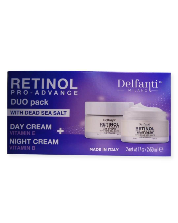 Delfanti-Milano • RETINOL PRO-ADVANCE • Anti-Aging DUO pack • Day + Night Creams • Face and Neck Moisturizers with Dead Sea Minerals and Vitamins E and B •…